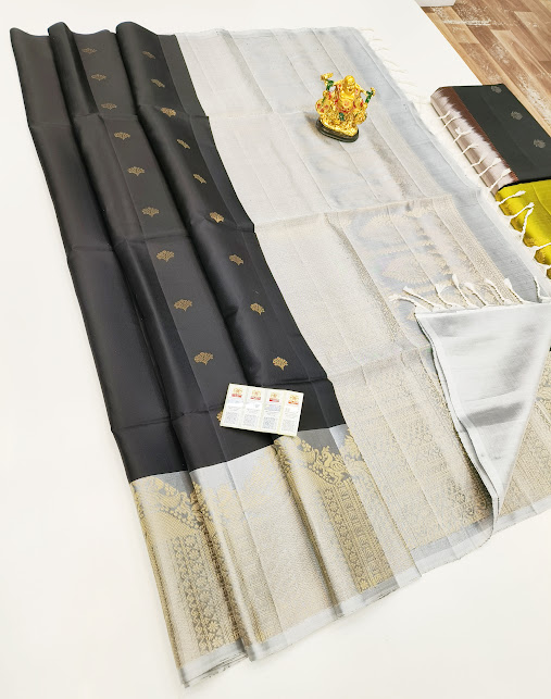 Unique Design Pure Soft Silk Saree Black Color w/ Blouse