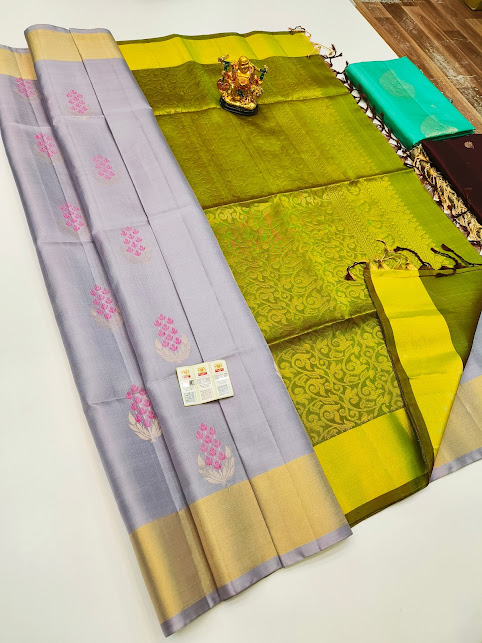 Unique Design Pure Soft Silk Saree Light Gray Color w/ Blouse