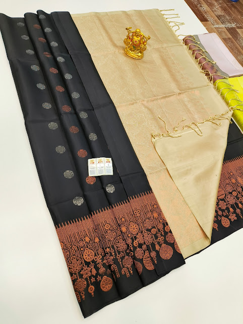 Unique Different Design Pure Soft Silk Saree Black Color w/ Blouse