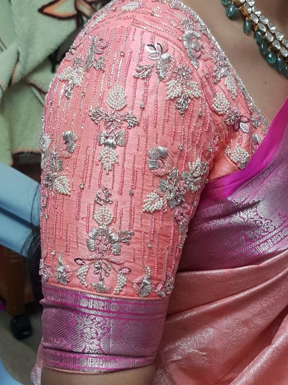 Unique Simple Thread Work Design Party Blouse Peach Color