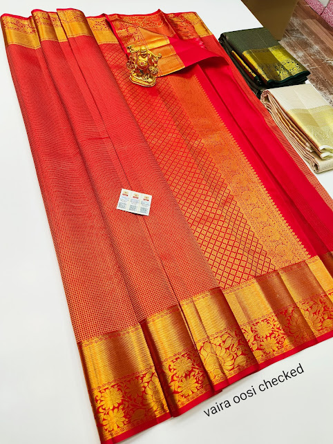 Vaira Oosi Zari Work Pure Kanjivaram Fancy Silk Saree Red Color w/ Blouse