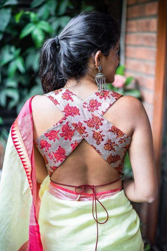 Whats App for Latest Sarees & DesignsThis X design back neck party blouse is a classic and stylish gray color. The neckline is cut in an X shape and is finished off with detailed designs. It is perfect for a night out or any special occasion. The blouse comes with a matching gray fabric belt for a more secure and stylish look.